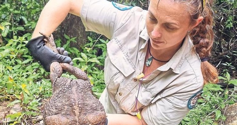 AVUSTRALYA'DA bir ulusal parkta geçen hafta 2.7 kiloluk dev kamış kurbağası bulundu. Kurbağanın normalin 6 katı büyüklüğünde olduğunu belirten yetkililer, hayvana 'Toadzilla' ismini verdiklerini belirtti. Avustralya Çevre ve Bilim Müdürlüğü, kamış kurbağasının geçen hafta Queensland eyaletindeki Conway Ulusal Park'ta bulunduğunu belirterek, "Bu büyüklükte bir kamış kurbağası, ağzına sığdırabildiği her şeyi yer ve buna böcekler, sürüngenler, küçük memeliler dahildir. Boyundan dolayı dişi olduğuna inanıyoruz ve dişi kamış kurbağaları erkeklerden daha büyüktür. 2.7 kilo olması yeni bir rekor anlamına geliyor" dedi.