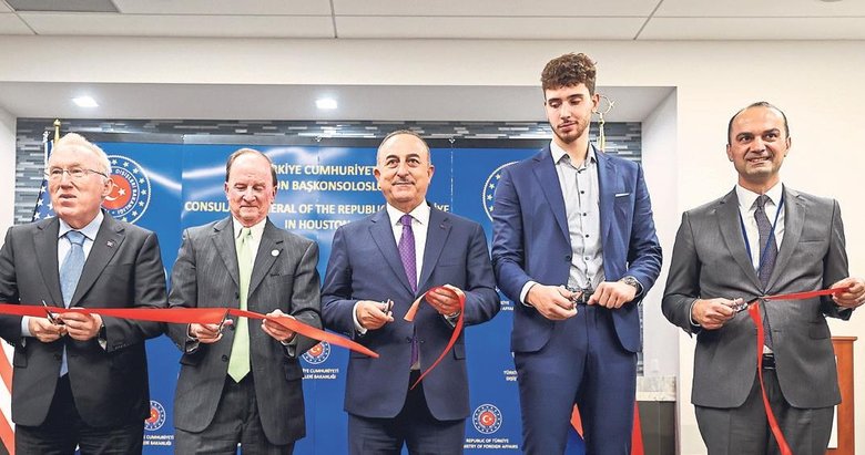 TEXAS'IN Houston kentindeki Türk Başkonsolosluğu'nun yeni hizmet binası, ABD temaslarını sürdüren Dışişleri Bakanı Mevlüt Çavuşoğlu'nun katıldığı törenle açıldı. Törene Amerikan Basketbol Ligi NBA'de Houston Rockets forması giyen başarılı milli basketbolcu Alperen Şengün de katıldı.