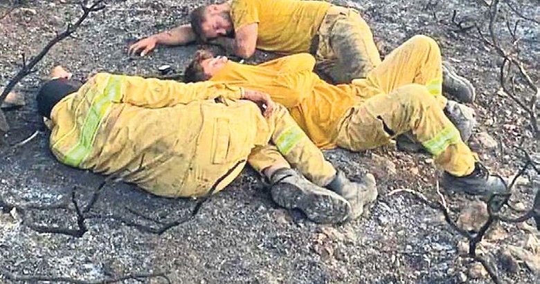 GECE boyu canlarını hiçe sayarak yangınla savaşmaktan bitap düşen itfaiye erlerinin, yanan toprak alanda uyuduğunu gören bir vatandaş tarafından sosyal medyada paylaşılan fotoğraflar, görenleri duygulandırdı.