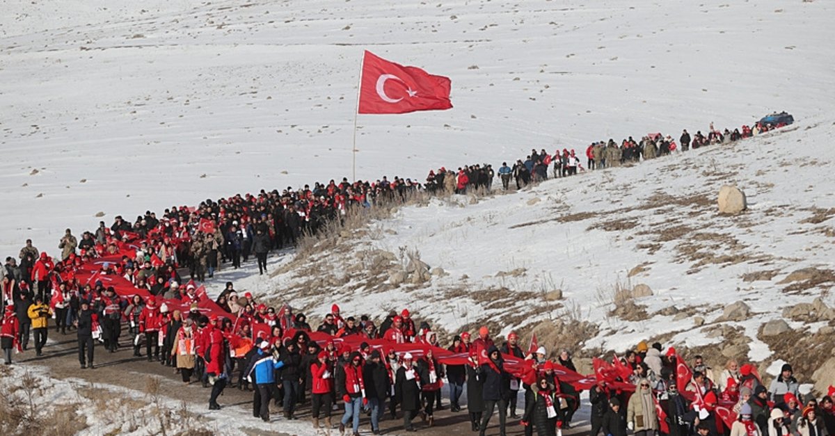 Kent merkezi ile Sarıkamış ilçesinden otobüslerle zirveye ulaşan katılımcılar, Türk bayraklarıyla yürüyerek toplanma alanına geldi. Vatandaşlar, Kızılçubuk bölgesinde şehitler anısına yapılan kardan heykellerin önünde fotoğraf çektirdi.