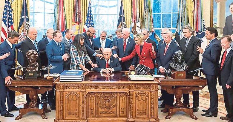ABD, İsrail ve İran arasında süren savaşın 7'nci gününde, Beyaz Saray'dan dikkat çeken görüntüler paylaşıldı. Oval Ofis'te Evangelist pastörler, Başkan Donald Trump'ın etrafında toplanarak ona dokunup dua etti. O anlar, sosyal medyada Beyaz Saray yetkilileri tarafından yayımlandı ve tepkilere yol açtı. ABD Savunma Bakanı Pete Hegseth'in vücudundaki dövmeler ise, tarihsel ve dini göndermeleri nedeniyle uzun süredir ABD kamuoyunda tartışma konusuydu. Aşırı sağ ve İslam karşıtlığıyla ilişkilendirilen dövmelerin kasıtlı olarak kamuoyunun önüne servis edilmesi dikkat çekiyor.