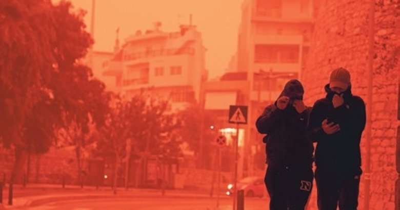 GÜNEYDEN esen kuvvetli rüzgar Afrika'dan gelen çöl tozunu beraberinde taşıdı. Yunanistan'ın Girit Adası bölgesinde yoğunlaşan çöl tozları nedeniyle gökyüzü kırmızıya boyandı. Yoğun çöl tozu nedeniyle görüş mesafesinin düştüğü adadaki Hrakleio Havaalanı'nda uçuşlar iptal edildi. Şiddetli rüzgar nedeniyle uçakların piste inişinin güçleşmesi de uçuş iptallerinin bir diğer nedeni oldu. Şiddetli rüzgar nedeniyle adaya deniz ulaşımı da durdu.