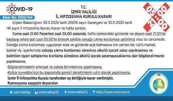 Türkiye pandemiyle mücadele kapsamında 17 günlük tam kapanmaya gitti. Bu dönemde oluşturacağı sakıncalar da düşünülerek içki satışı yasaklandı. Bununla ilgili Valilikler bünyesinde oluşturulan Hıfzıssıhha Kurulları da il bazında karar alıp kamuoyuna duyurdu. CHP Genel Merkezi bu karara karşı çıkarken Çanakkale Belediyesi'nin CHP'li Başkanı Ülgür Gökhan, ilindeki kurulun yasak kararına imza attı. Aynı karar İzmir'de de Vali Yavuz Selim Köşger Başkanlığı'nda alındı ve 30 Nisan'da kamuoyuna duyuruldu. Valiliğin internet sitesinde geçtiğimiz cuma akşamı yapılan duyurunun metninde "kararın oybirliği ile alındığı" özellikle vurgulandı.