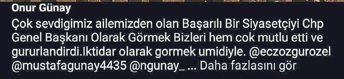 Öte yandan Günay ailesinin Ağbaba gibi Özgür Özel'i de CHP'ye Genel Başkan olduktan sonra sahibi oldukları balık restoranında ağırladıkları da anlaşıldı. Onur Günay'ın bu misafirlikle ilgili paylaşımında Özel için "Çok sevdiğimiz ailemizden olan başarılı bir siyasetçi" ifadesini kullanması dikkat çekti. Şimdi seçim süreci başından beri en tartışmalı isimlerden biri olan Mustafa Günay'ın, 'aileden birileri' olan Özel ve Ağbaba tarafından ayrıcalık tanınarak aday yapılıp yapılmayacağını hep birlikte göreceğiz.