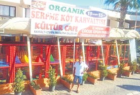 Çeşme'de Carrefour karşısında bir cafe ilişti gözümüze...İlginç geldi ve dostlarla girdik içeri.