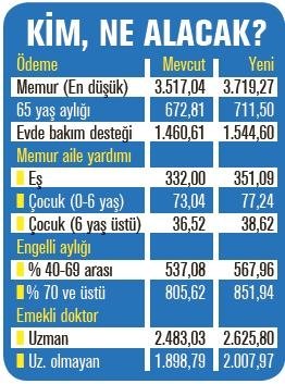 Yeni zam oranıyla birlikte memurların aldığı aile ve çocuk yardımları da yükselmiş oldu. 65 yaş aylığı, engelli maaşı ve evde bakım paralarına da yüzde 5.75 oranında zam yapıldı. Böylece milyonlarca vatandaş yılın ikinci yarısına zamlı maaşlarla girmiş oldu.