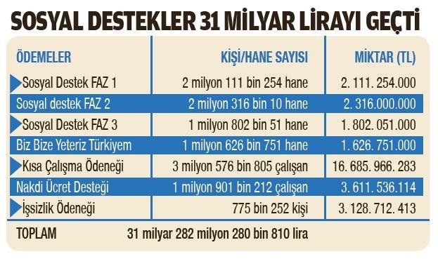 SOSYAL DESTEKLER 31 MİLYAR LİRAYI GEÇTİ