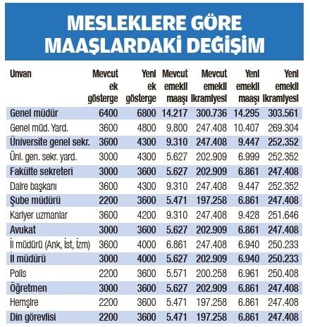 Taslak metin son kez müzakere masasında görüşüldükten sonra Başkan Recep Tayyip Erdoğan'a sunulacak ve son karar verilecek. Ek gösterge artışı ile birlikte özellikle emekli maaşları ve emekli ikramiyeleri yükselecek.