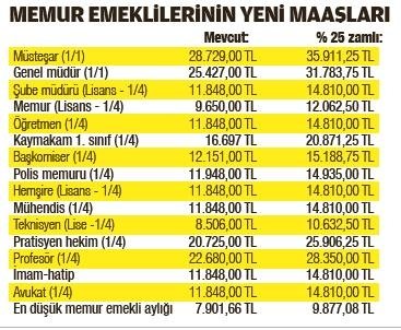 Yüzde 25'lik zam emeklilerin kök aylıklarına uygulanacak.