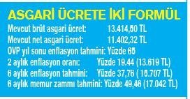 Asgari ücretin enflasyona göre belirlenmesi durumunda iki farklı rakam ortaya çıkıyor. Orta Vadeli Program'da açıklanan yüzde 65 enflasyon öngörüsü bulunuyor.