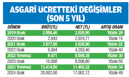 Geçtiğimiz yıl yüzde 49 artışla brüt 20.002TL ve net olarak da 17.002 TL olarak belirlenen asgari ücret için birçok hesaplama yapılıyor. Bundan önceki senelerde olduğu gibi yıl sonu enflasyon beklentilerine göre belirlenmesi durumunda Orta Vadeli Programdaki yüzde 41.5 ve Merkez Bankası'nın yüzde 44 oranındaki beklentileri belirleyici olacak.