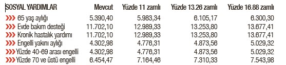 HASTALARA DESTEK: Tüberküloz veya SSPE hastalarına yapılan 11 bin 702 lira tutarındaki yardım da zam oranı yüzde 13.26 olursa 13 bin 253, yüzde 16.88 olursa 13 bin 677 liraya ulaşacak.