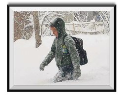 Çocuklar, o dondurucu soğukta, karlar içinde bata çıka ilerliyor...