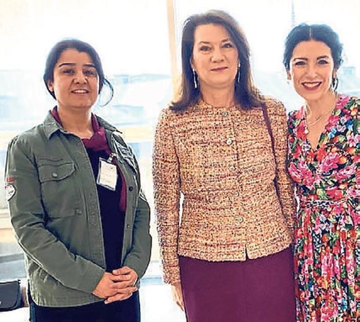 İsveç Dışişleri Bakanı Ann Linde, sözde "Suriye Demokratik Konseyi Başkanı" İlham Ahmed'le (sağ 2) görüştü.