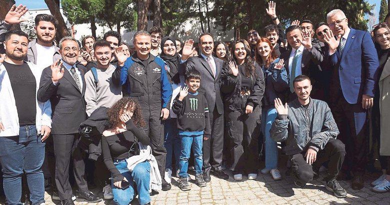 İzmir'e gelen Sanayi ve Teknoloji Bakanı Mehmet Fatih Kacır ve Türkiye'nin ilk astronotu Alper Gezeravcı, Ege Üniversitesi öğrencileriyle bir araya geldi.