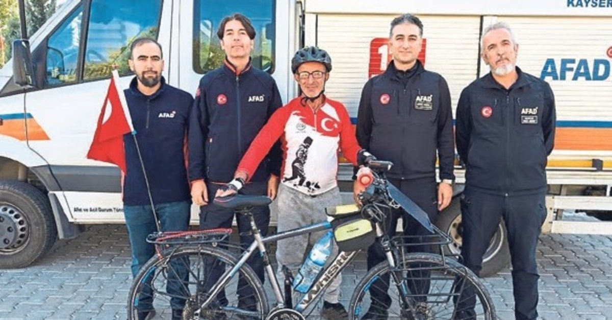İZMİR'DEN yola çıkan gezgin Orhan Kotluk, 'Asrın Felaketi' olarak nitelendirilen 6 Şubat depremlerinde hayatını kaybeden vatandaşları anmak için pedallıyor. Yolculuğunda Kayseri'ye ulaşan Kotluk, depremin merkez üssü Kahramanmaraş'ta yolculuğuna son verecek. Yolculuğu hakkında bilgi veren Orhan Kotluk, "AFAD birimlerine teşekkür ediyorum. AFAD İl Müdürlüğü'ne, İzmir AFAD İl Müdürlüğü'ne, yolda yol güvenliğini sağlayan emniyet teşkilatına... Destek olan herkese sonsuz teşekkür ederim" dedi.