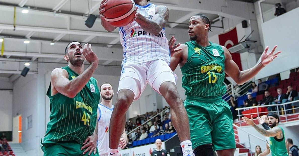 FIBA Europe Cup'taki temsilcilerimizden Aliağa Petkim Spor, 5. hafta mücadelesinde Kıbrıs Rum Kesimi'nin AEK Larnaca takımını ağırladı. İzmir ekibi ENKA Spor Salonu'nda oynanan mücadeleden 101-58 galip ayrıldı. İzmir temsilcisi bu galibiyetle grup liderliğini sürdürdü. Müsabakaya çok etkili başlayan Aliağa Petkim, ilk periyotu 26-14 önde kapattı. İkinci çeyrekte farkı iyice artıran Petkim devreyi 51-20 önde kapattı. Üçüncü periyotta rakibinin farkı indirmesine izin vermeyen temsilcimiz son bölüme 73-42 avantajla girdi. Dördüncü çeyrekte de üstünlüğünü devam ettiren Petkimspor maçı 101-58 kazandı. Maçın en skoreri 26 sayıyla David Efianayi oldu.