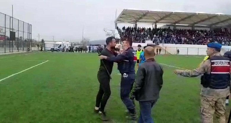 Maçtan sonra futbolcular birbirine girdi. Taraftarların da sahaya girmesiyle ortalık bir anda karıştı. Yaşanan gerginliğin artması üzerine jandarma, sahaya inerek olaylara müdahale etti. Saha içinde yaşanan olaylar cep telefonu kamerasına yansırken, jandarma ekiplerinin biber gazlı müdahalesinin ardından tarafların tartışması saha dışında da devam etti.