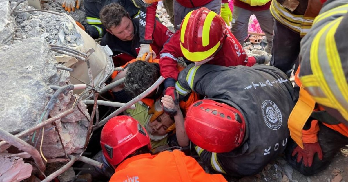 Ekipler enkaz altında ulaştığı Kaan'ın elini tuttu, ardından da sağlık ekibini çağırdı. Kaan'a enkaz altına damar yolu açılarak serum bağlandı.