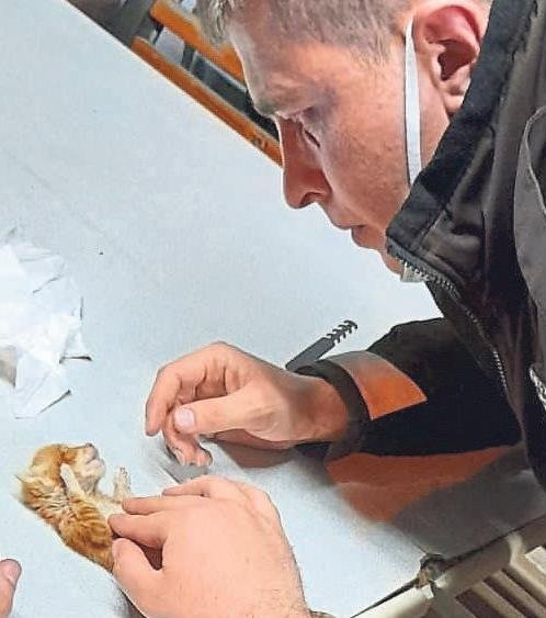 Samsun'da ise mahalle bekçisi Yunus Emre Özkan, devriye gezdiği sırada çöp konteynerinin altında hareketsiz yatan kediyi görüyor ve yanından geçip gitmek yerine müdahale ediyor.
