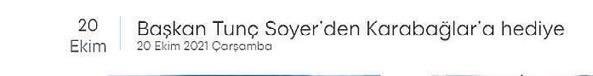 Bültenin başlığı aynen şu: "BAŞKAN TUNÇ SOYER'DEN KARABAĞLAR'A HEDİYE"...