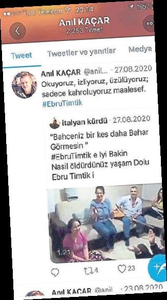 Örneğin Kaçar, bir paylaşımında HDP'yle ilgili gözaltılara tepki gösteriyor ve Türkiye'de faşizm olduğunu iddia ediyordu. Başka bir paylaşımında da 27 Ağustos 2020'de ölüm orucunda iken yaşamını yitiren DHKP-C'li Ebru Timtik'in arkasından "Okuyoruz, izliyoruz, üzülüyoruz; sadece kahroluyoruz maalesef" diye ağıt yakıyordu.