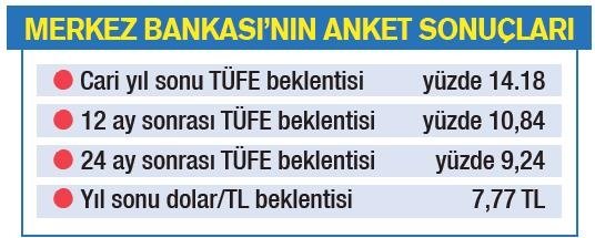 İşte bütün bu rakamlar merak edilirken bazı ipuçları da gelmeye başladı. Son ipucu Merkez Bankası'nın beklenti anketinden geldi. Buna göre yıl sonu enflasyon beklentisi yüzde 14.18 olarak açıklandı.
