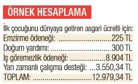 Annelerin çalışsın çalışmasın bazı desteklerden yararlanma hakkı var. Bunlardan bazılarını çalışan anneler bazılarını ise çalışmasa da tüm anneler alabiliyor. Üç türlü ödeme yapılıyor: 1-Doğum parası: Bu ödeme devlet tarafından 2015 Mayıs ayı sonrası doğan her çocuk için yapılıyor. Eğer 1. çocuksa 300, ikinci ise 400, üçüncü ve daha fazla çocuk varsa 600 lira çalışsın çalışmasın tüm annelere ödeniyor. 2-Emzirme ödeneği: Bu para ise doğum sonrası tek seferlik çalışıyorsa annenin kendisine çalışmıyorsa çalışan eşine ödeniyor. Bu yıl için 225 lira. 3-İş göremezlik ödeneği: Bu ödeme ise çalışan anneler için. Anneler doğumdan önce 8 doğumdan sonra 8 olmak üzere 16 hafta izin yapıyor. Bu izin sırasında raporlu olan annelere 112 günlük ücretleri brüt ücret üzerinden 3'te 2 oranında ödeniyor. Bu üç ödemeyi de alan bir anne için en az ödeme 12 bin 979 lirayı buluyor. Maaş arttıkça rakam da artıyor.