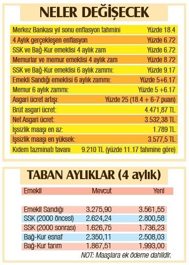 İŞÇİLERE ZAMLI MAAŞ: Kamuda çalışan işçilere yapılan toplu sözleşme zammından sonra sıra asgari ücret artışına geldi. Bu konuda çalışmalar Aralık ayı içinde tamamlanacak. Gerek hükümet yetkilileri gerekse diğer paydaşlardan gelen açıklamalar asgari ücret artışının, enflasyonun 7-8 puan daha üstünde olacağını gösteriyor. Burada beklentiler yüzde 25-30 arasında bir zam yapılması yönünde. Yüzde 25 zamma göre net asgari ücret 3.532 lira civarında olacak.