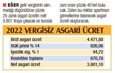 BAKAN Bilgin asgari ücretten gelir vergisi alınmaması konusundaki sorulara da 'alternatifler üzerinde çalışıyoruz' cevabını verdi. Burada gelir vergisi alınmaması formülü zaten şu anda apartman görevlileri için uygulanıyor.