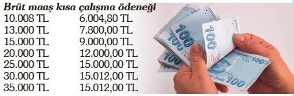 İşçilere kısa çalışma ödeneği ile birlikte Genel Sağlık Sigortası primleri de ödeniyor. İşçiler brüt maaşlarının yüzde 60'ı kadar kısa çalışma ödeneği alırken üst sınır olarak asgari ücretin yüzde 150'si kadar miktar belirleniyor.